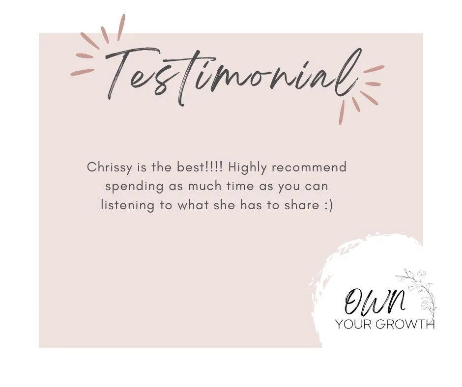 Weekly 1 on 1 texting with Chrissy to ask questions, gain feedback, and encouragement. You'll have unrestricted text-access. Text at any time and I will respond during business hours.